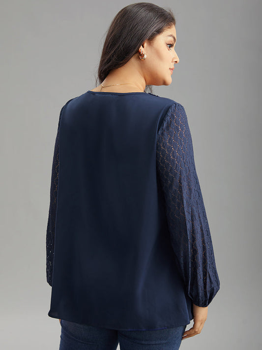 V Neck Guipure Lace Lantern Sleeve Blouse