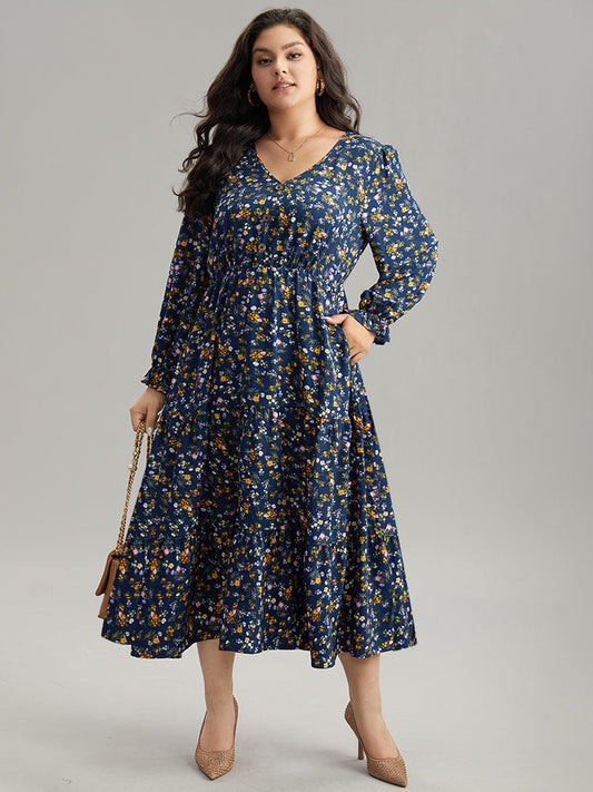 Ditsy Floral Button Detail Ruffles Pocket Dress