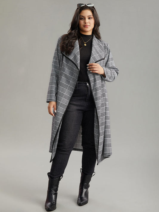 Plaid Asymmetrical Neck Open Front Coat