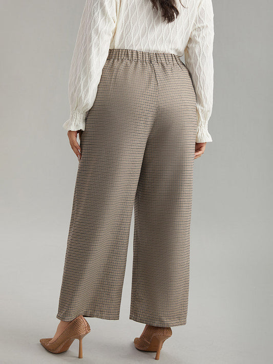 Gingham Plicated Detail Elastic Waist Pants