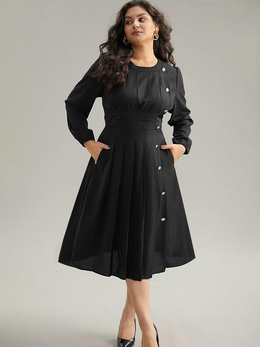 Static-Free Metal Detail Plicated Detail Dress