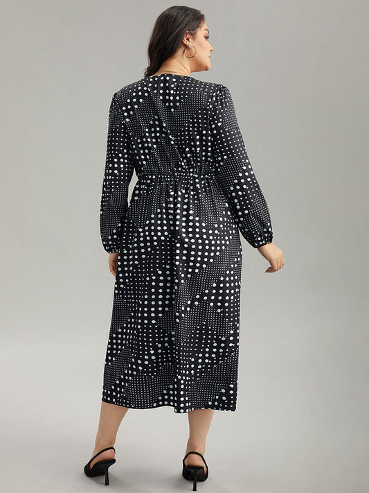 Polka Dot Elastic Waist Split Hem Dress