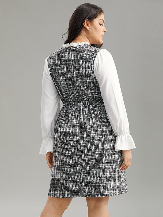 Anti-Wrinkle Patchwork Button Up Belted Dress