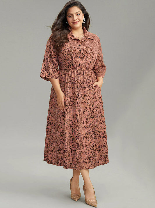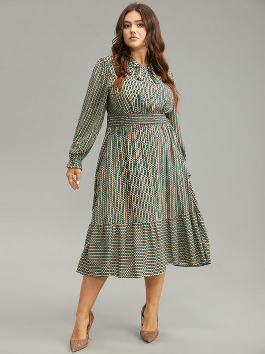 Striped Geometric Bowknot Keyhole Shirred Dress
