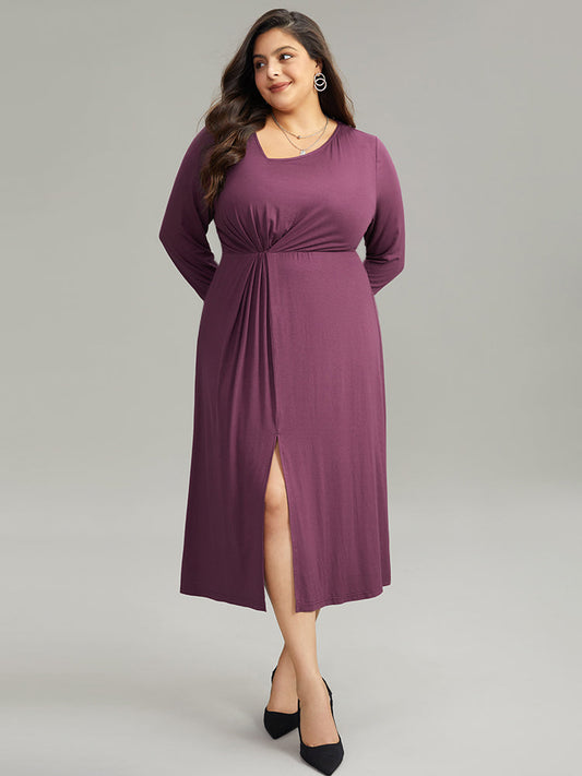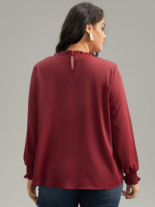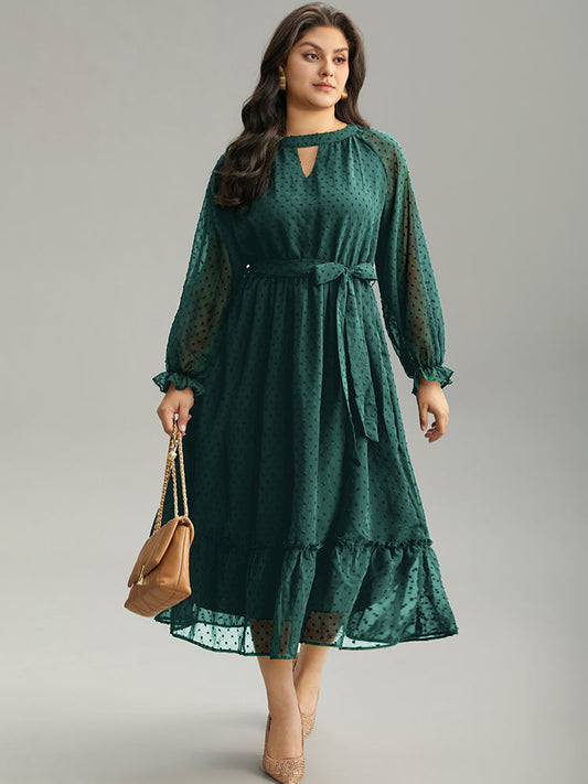 Chiffon Texture Belted Mesh Keyhole Frill Trim Dress