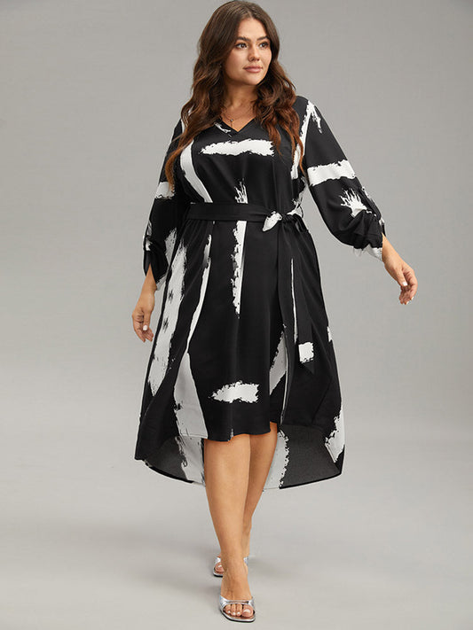 Plain Square Neck Belted Metal Detail Zipper Dress