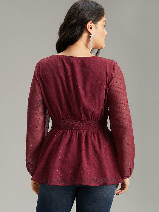 Anti-Wrinkle Laser Cut Contrast Ruffles Blouse