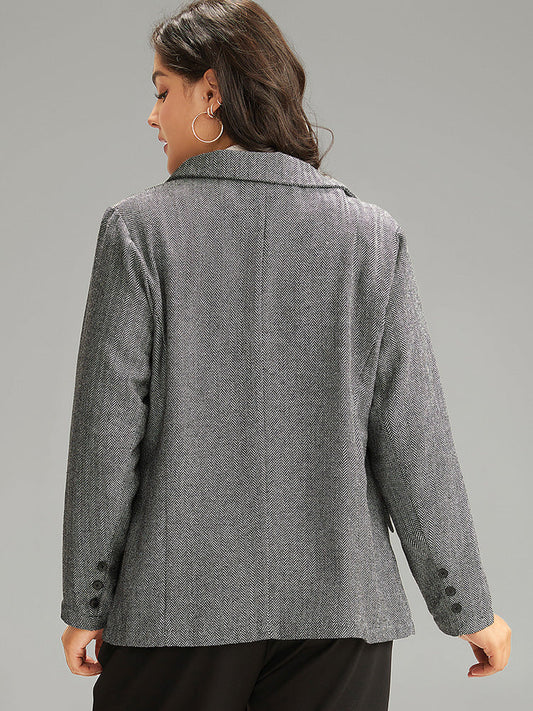 Plain Textured Pocket Suit Collar Blazer