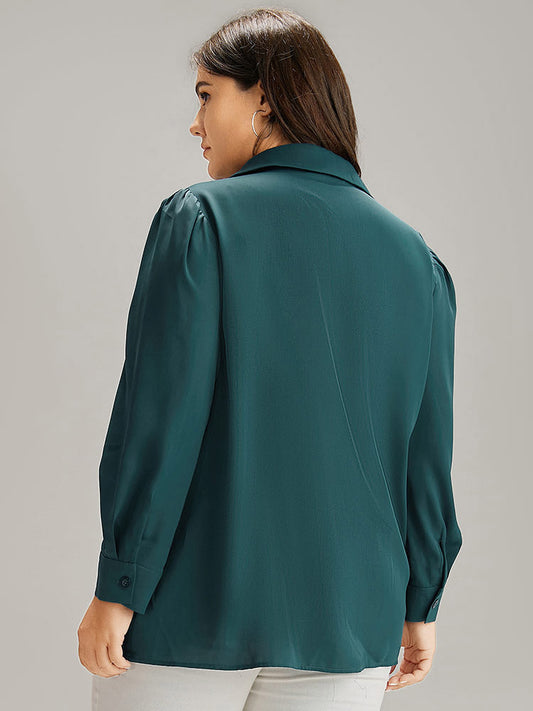 Solid Shirt Collar Gathered Blouse