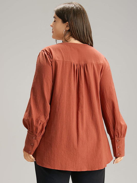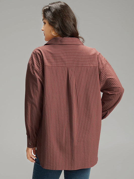 Striped Shirt Collar Pocket Arc Hem Blouse