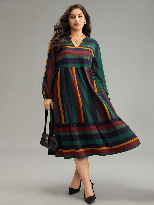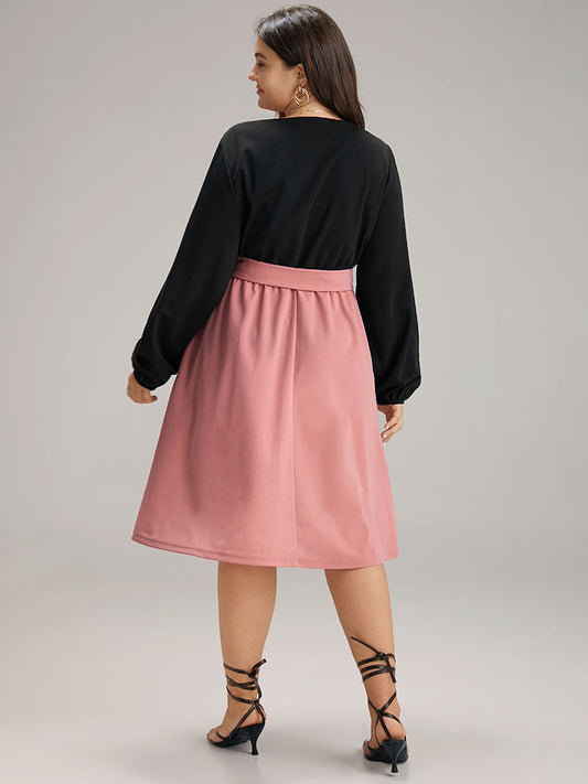 Anti-Wrinkle Floral Print Belted Notched Dress