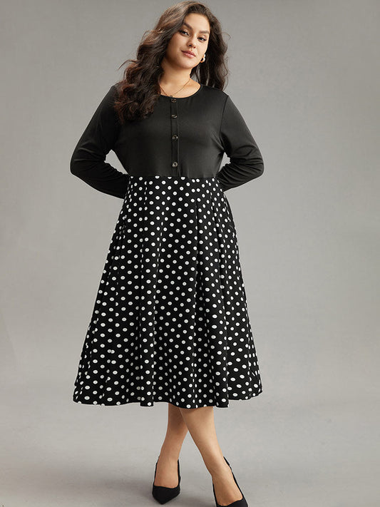 Polka Dot Chiffon Frill Trim Cut Out Elastic Waist Blouse