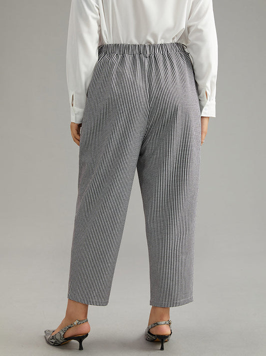 Twill Houndstooth Tab Sleeve Patchwork Blouse