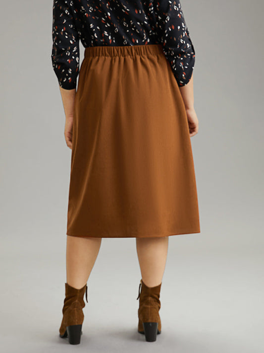 Plain Texture Elastic Waist Pocket Split Front Skirt