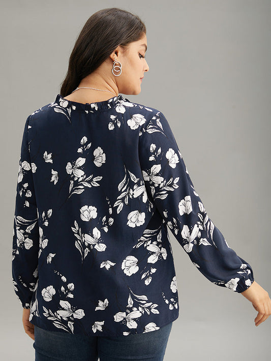 Silhouette Floral Print Ruffles Lantern Sleeve Blouse
