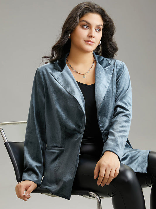 Velvet Suit Collar Pocket Button Up Blazer