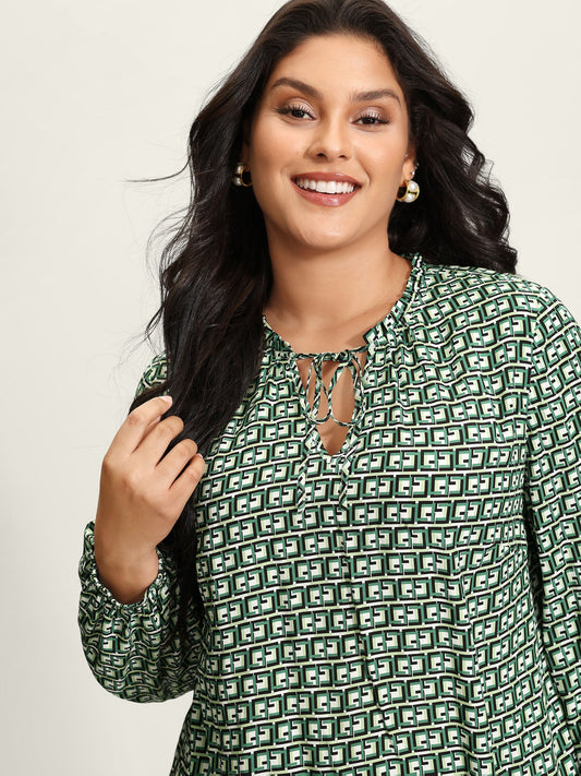 Geometric Print Neck-Tie Relaxed-Fit Blouse