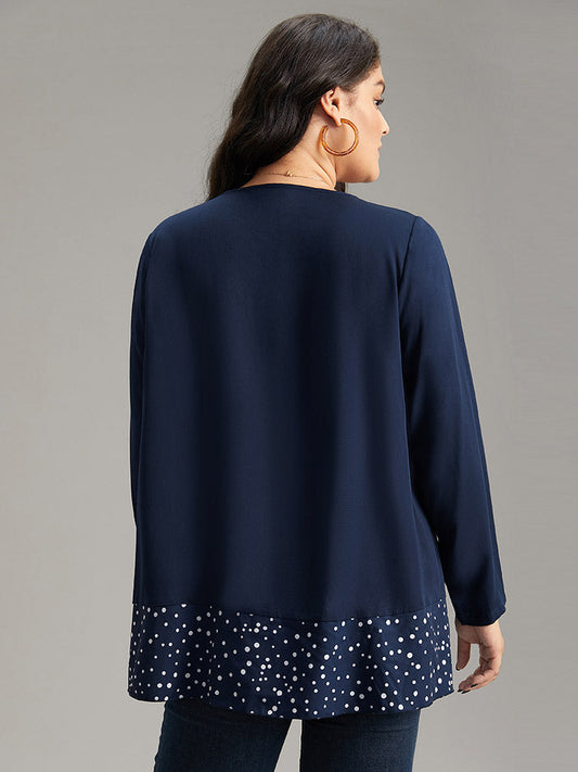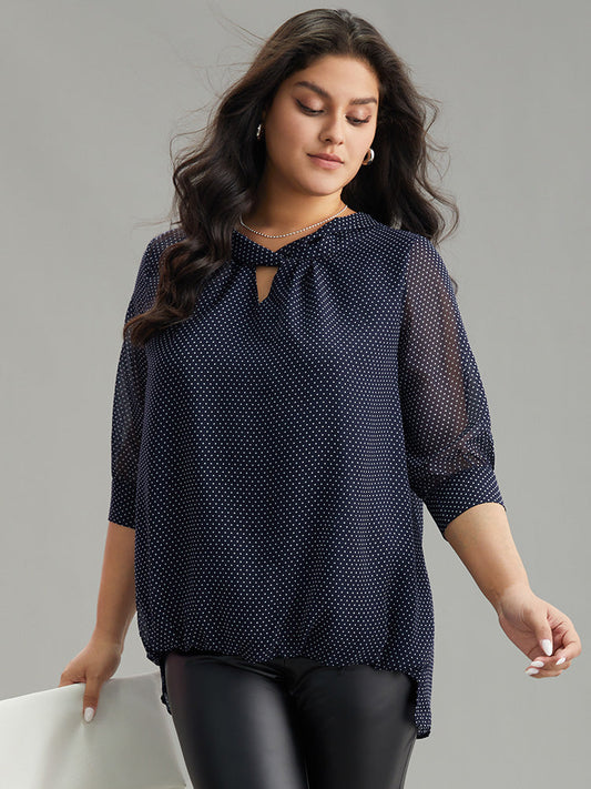 Chiffon Polka Dot Mesh Keyhole Twist Front Blouse