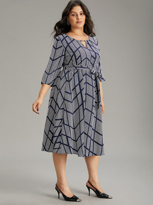 Christmas Plaid Crochet Lace Mesh Cut Out Dress