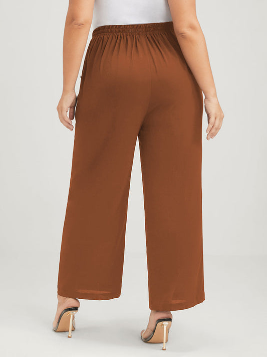 Solid Button Front Lantern Sleeve Pocket Wide Leg Jumpsuit