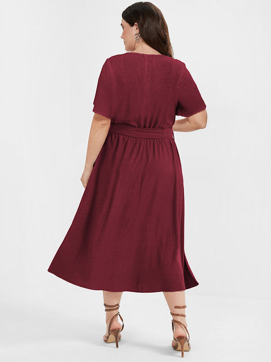 Solid Gathered Pocket Lantern Sleeve Flutter Split Maxi Dress