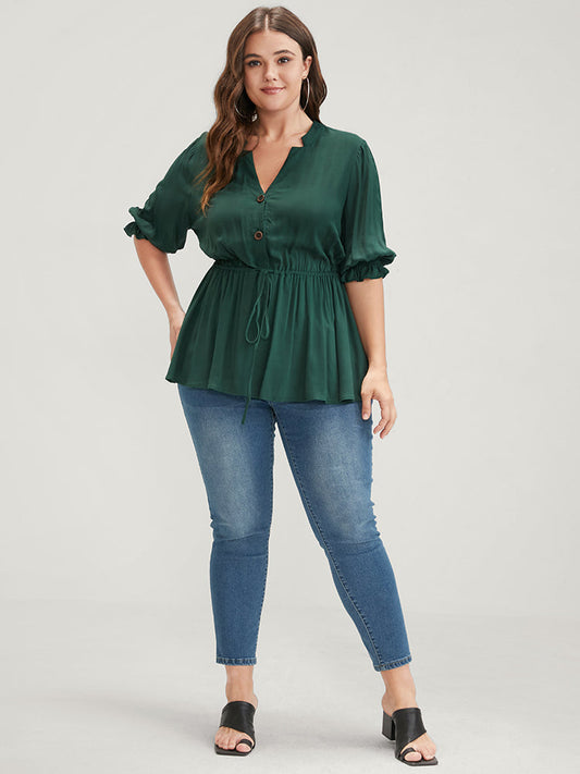 Plain Button Pocket Knotted Sleeve Jumpsuit