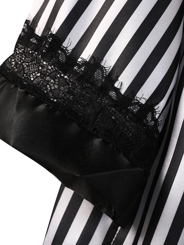 4pcs Striped Lace Trim Contrast Pajama Set