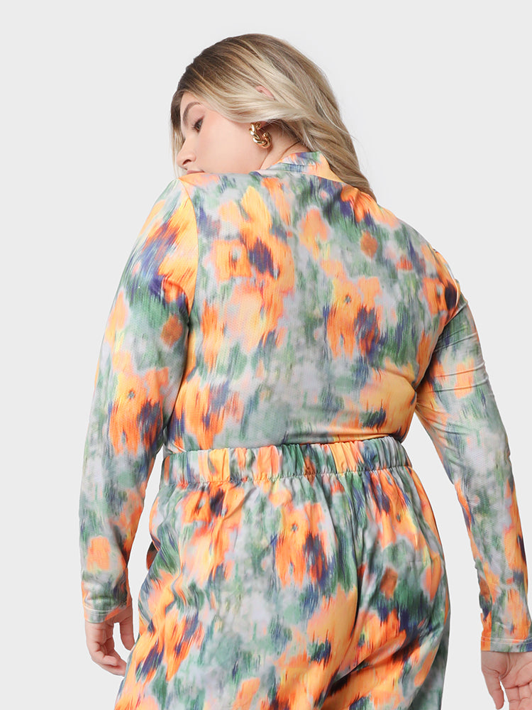 Abstract Floral Print High Neck T-shirt