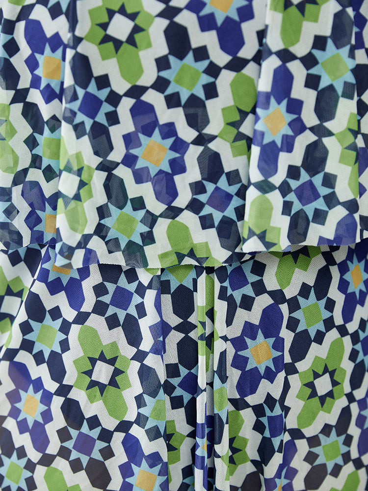 Bandana & Geo Crisscross Ruffle Tiered Swim Dress