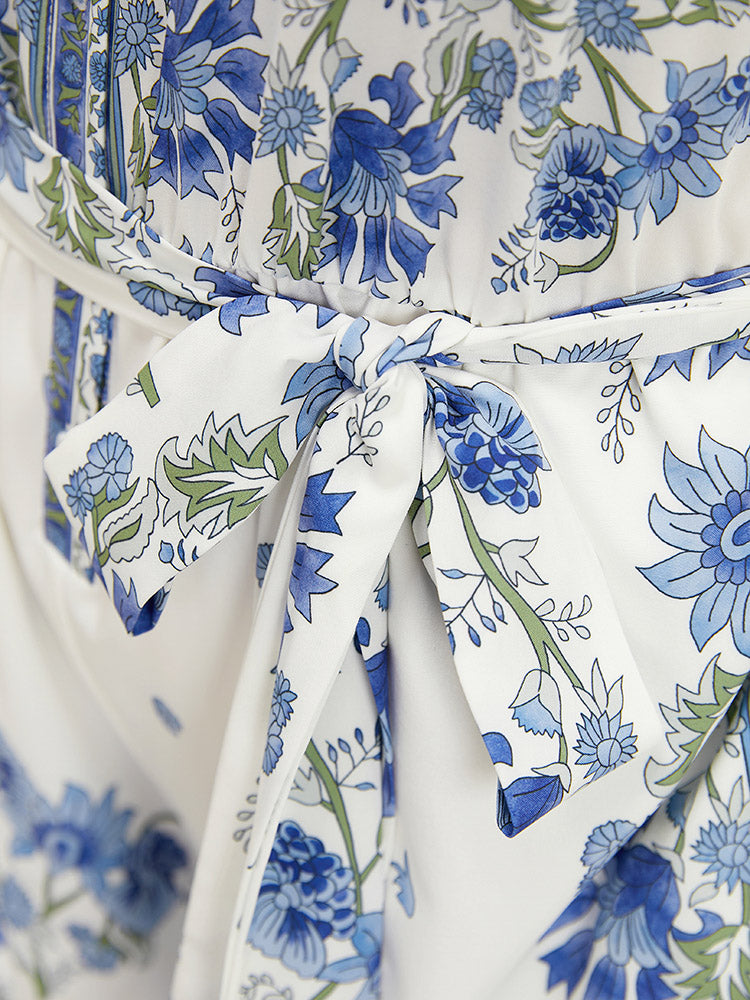 Bandana Puff Sleeve Belted Pocket Button Detail Romper