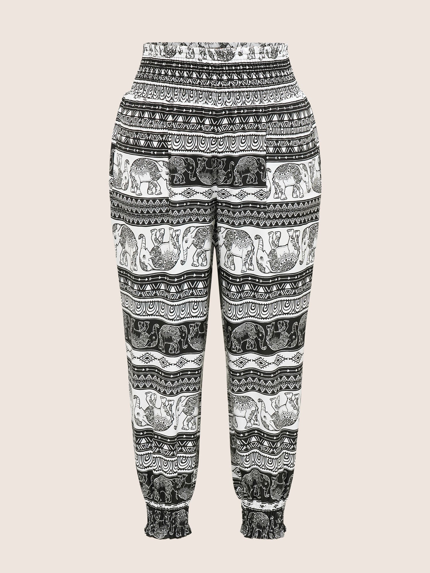 Bandana Shirred Elastic Waist Patched Pocket Pants