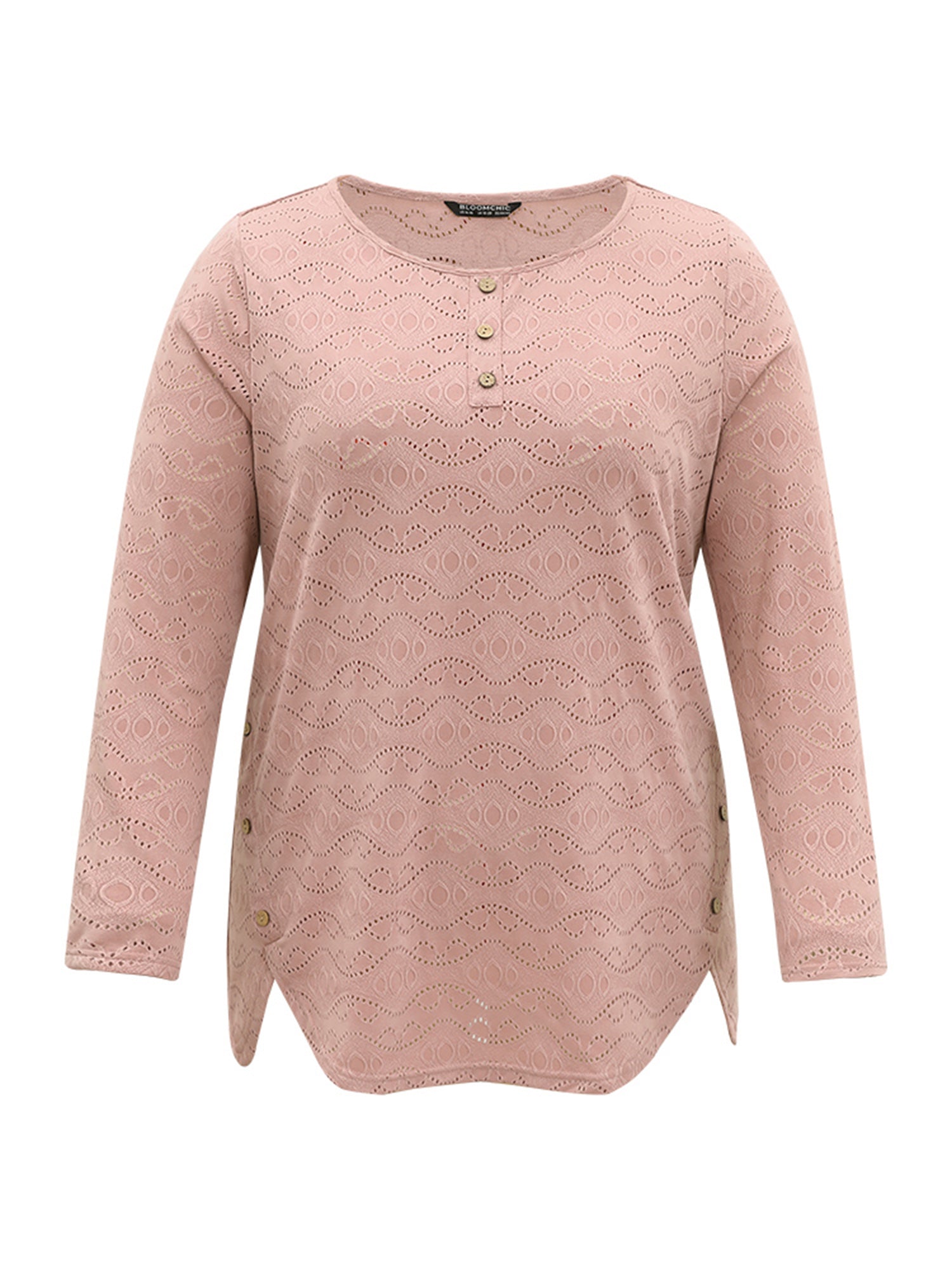 Broderie Anglaise Button Detail Arc Hem T-shirt