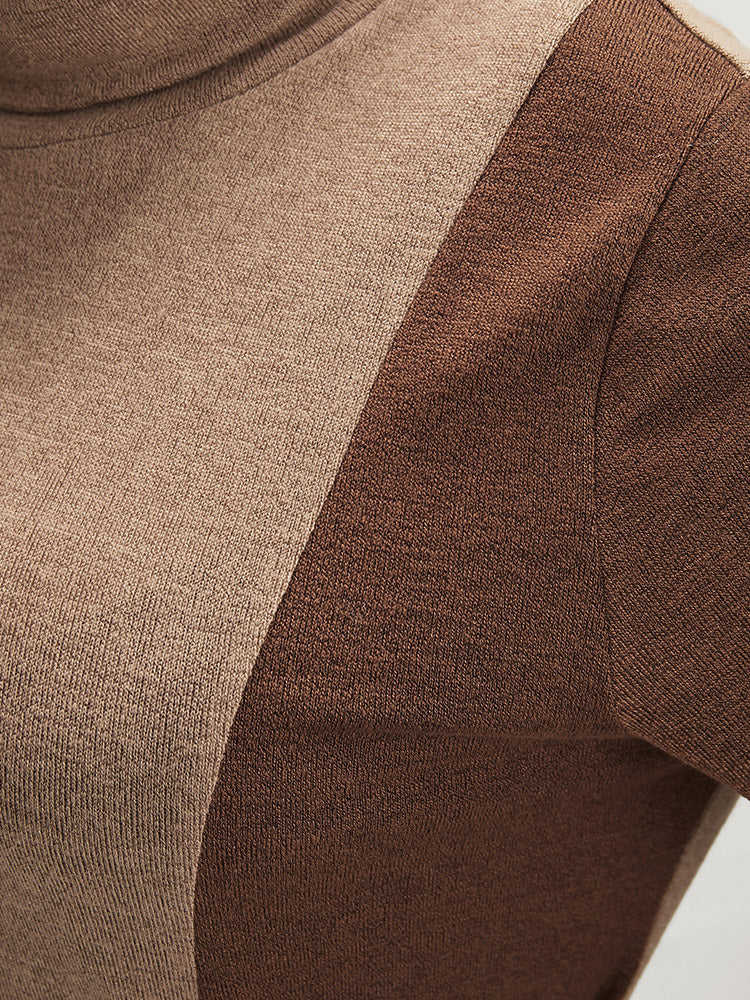 Colorblock Contrast Buckle Side Asymmetrical Hem Long Tee