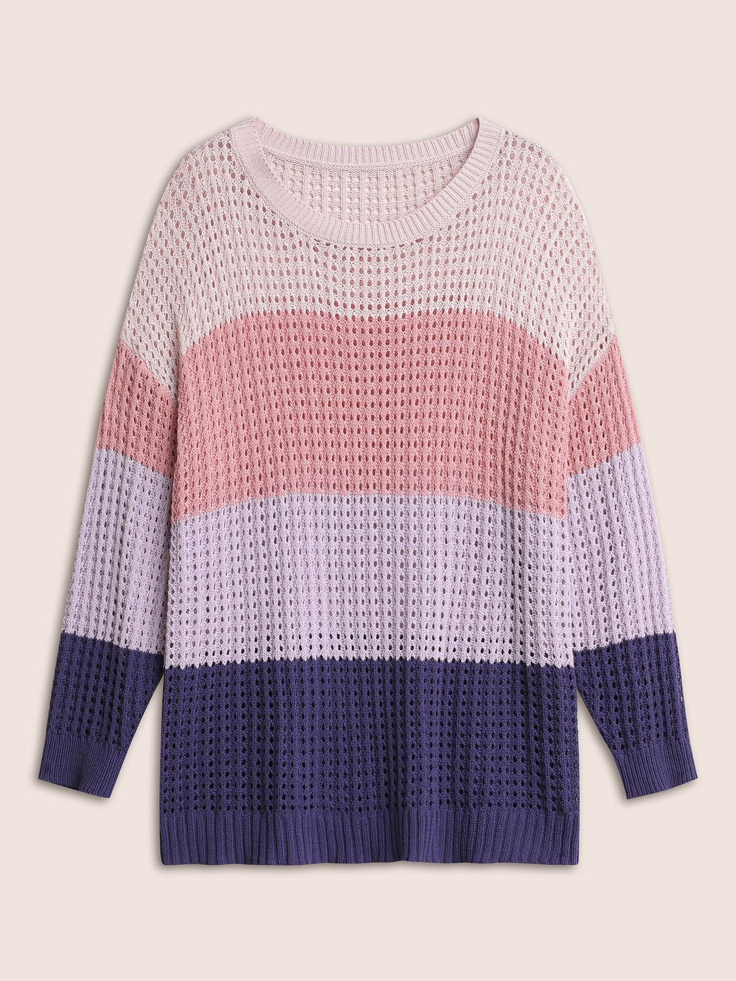 Colorblock Contrast Pointelle Knit Drop Shoulder Pullover