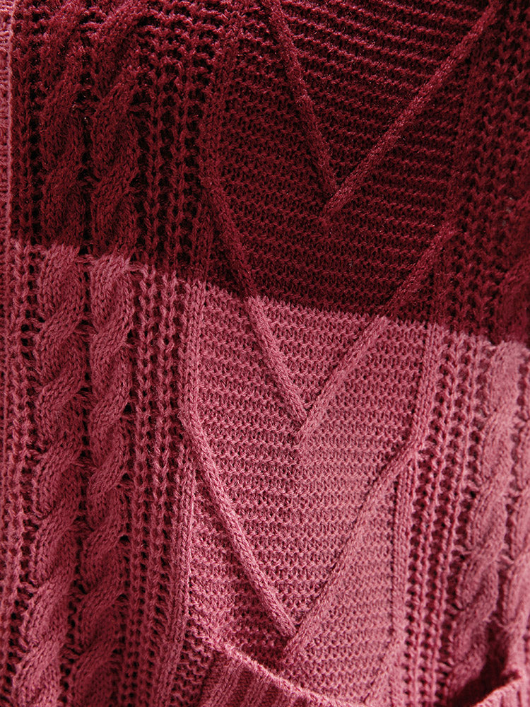 Colorblock Contrast Pointelle Knit Pocket Button Front Cardigan