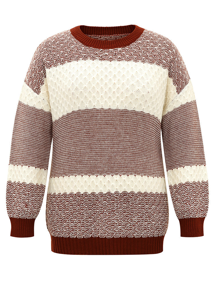 Colorblock Contrast Round Neck Elastic Cuffs Pullover