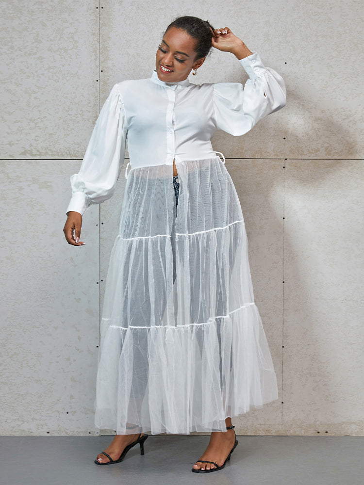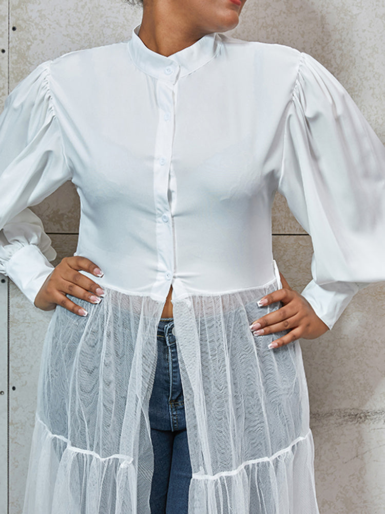 Contrast Mesh Sheer Ruffle Shirt Dress