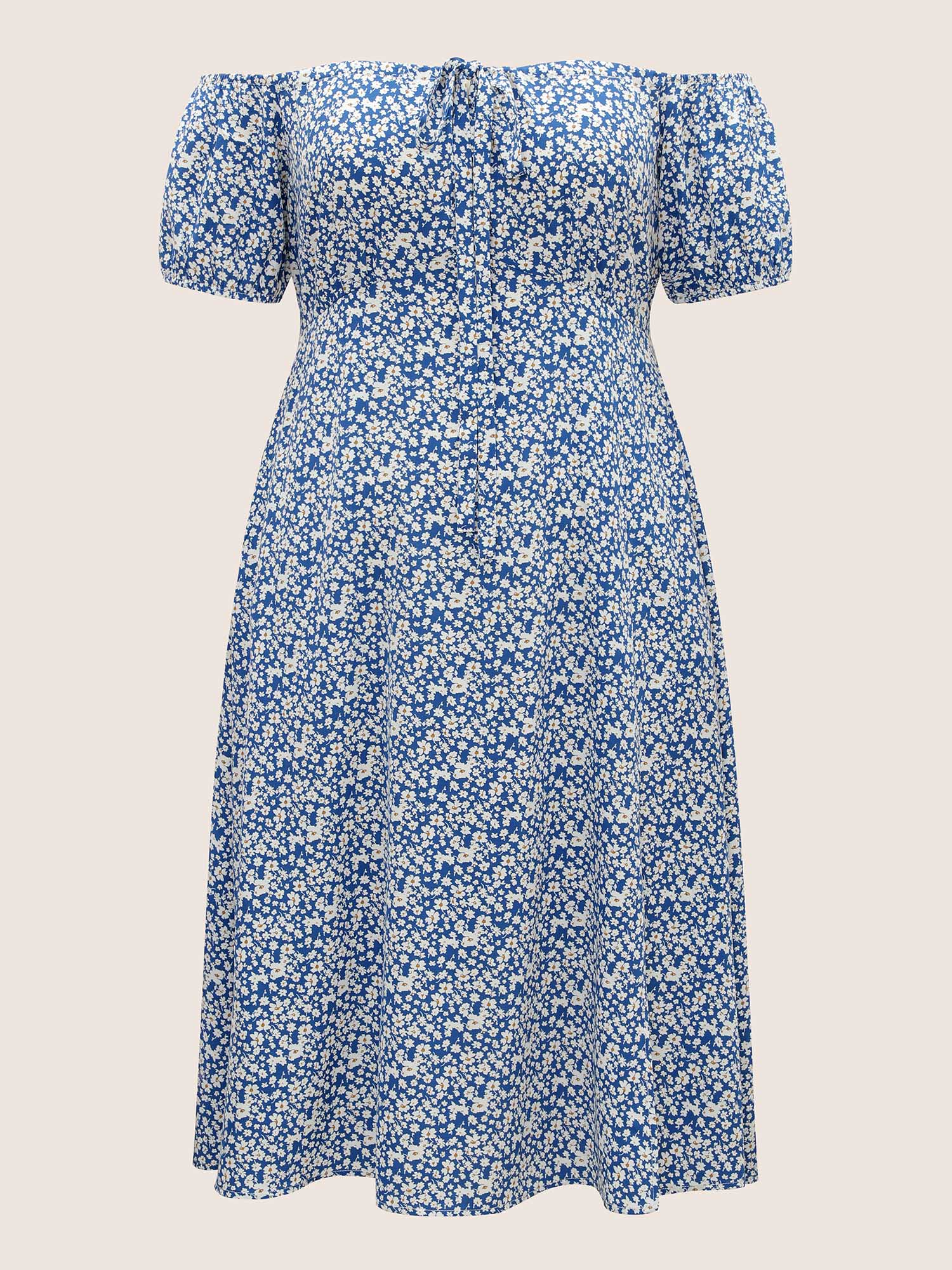 Ditsy Floral One Shoulder Neck Cross Straps Dress