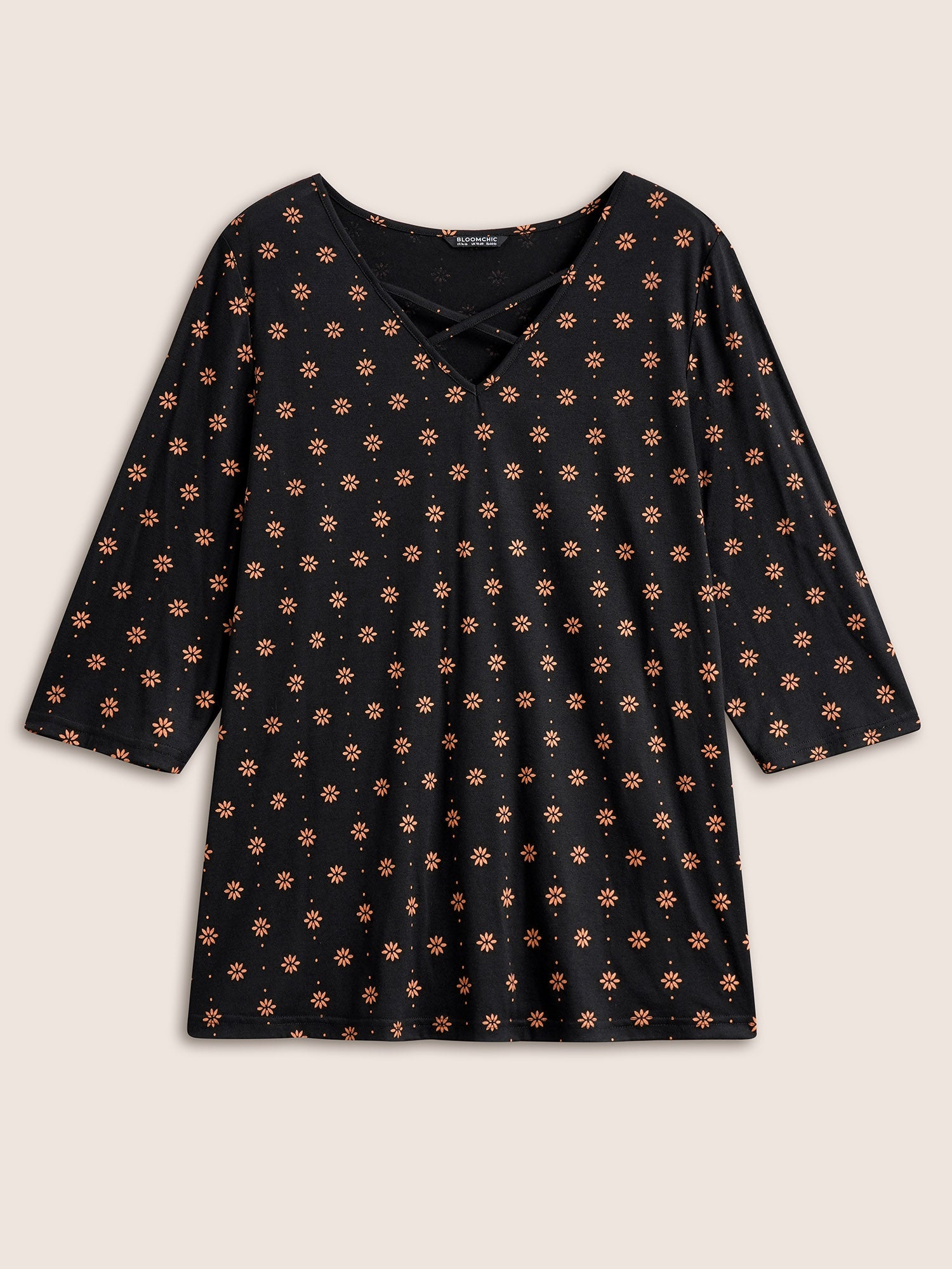 Ditsy Floral Print Crisscross Neck T-shirt