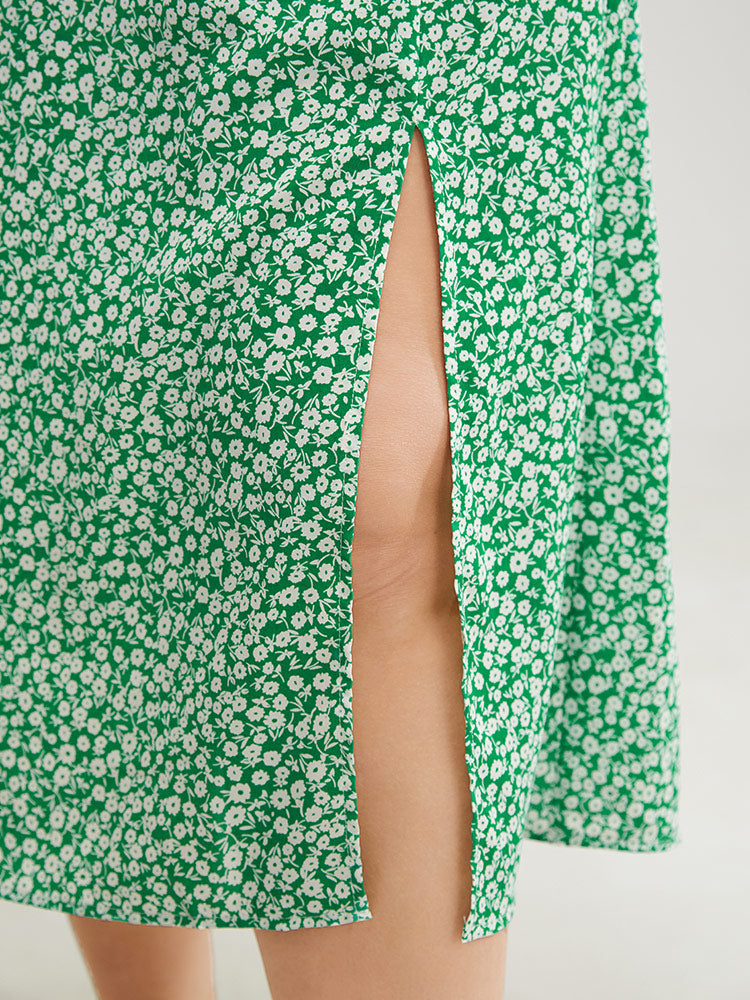 Ditsy Floral Split Puff Sleeve Pocket Shirred Waist Dress