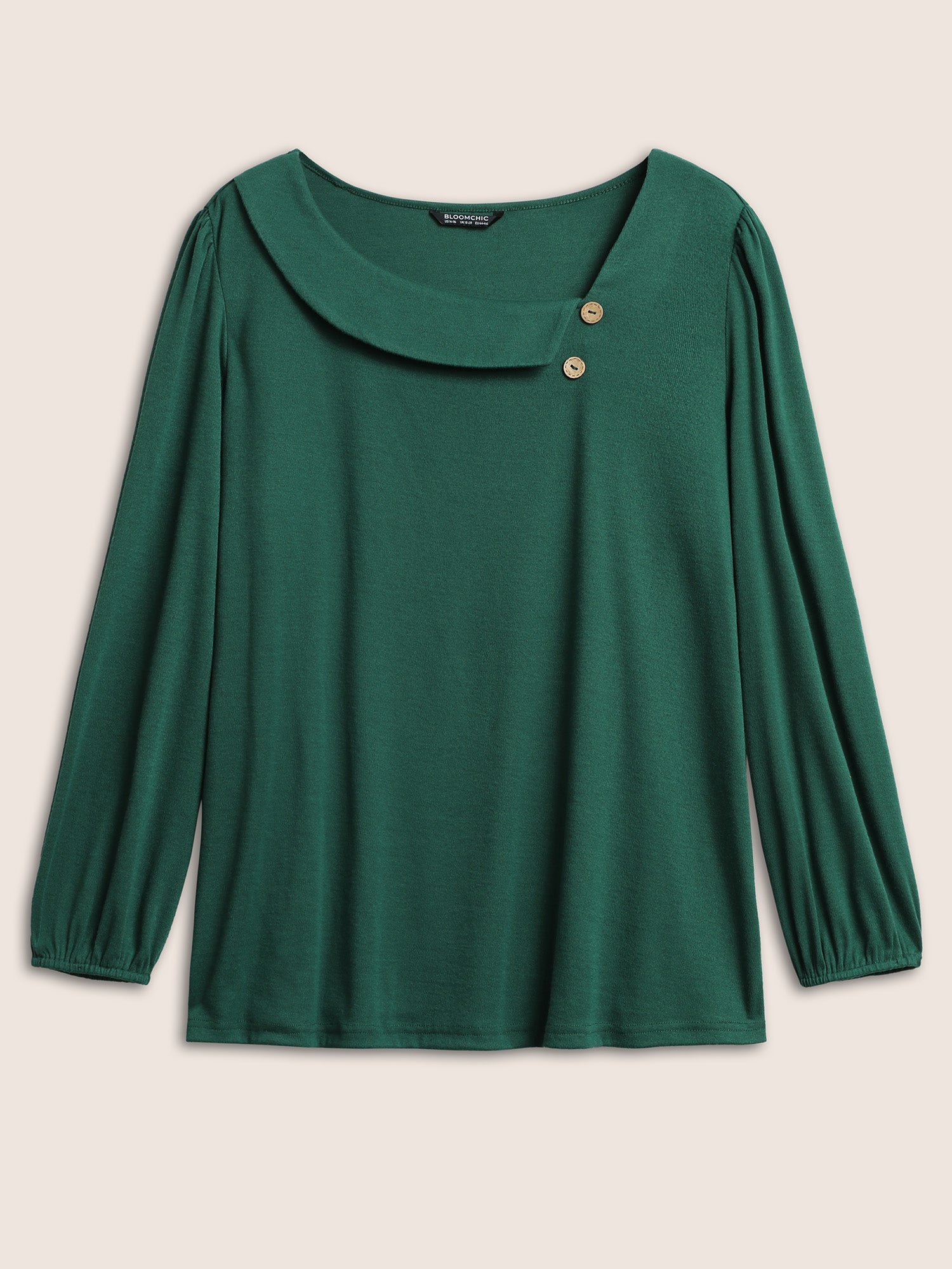 Elastic Cuffs Asymmetrical Neck Button Detail T-shirt