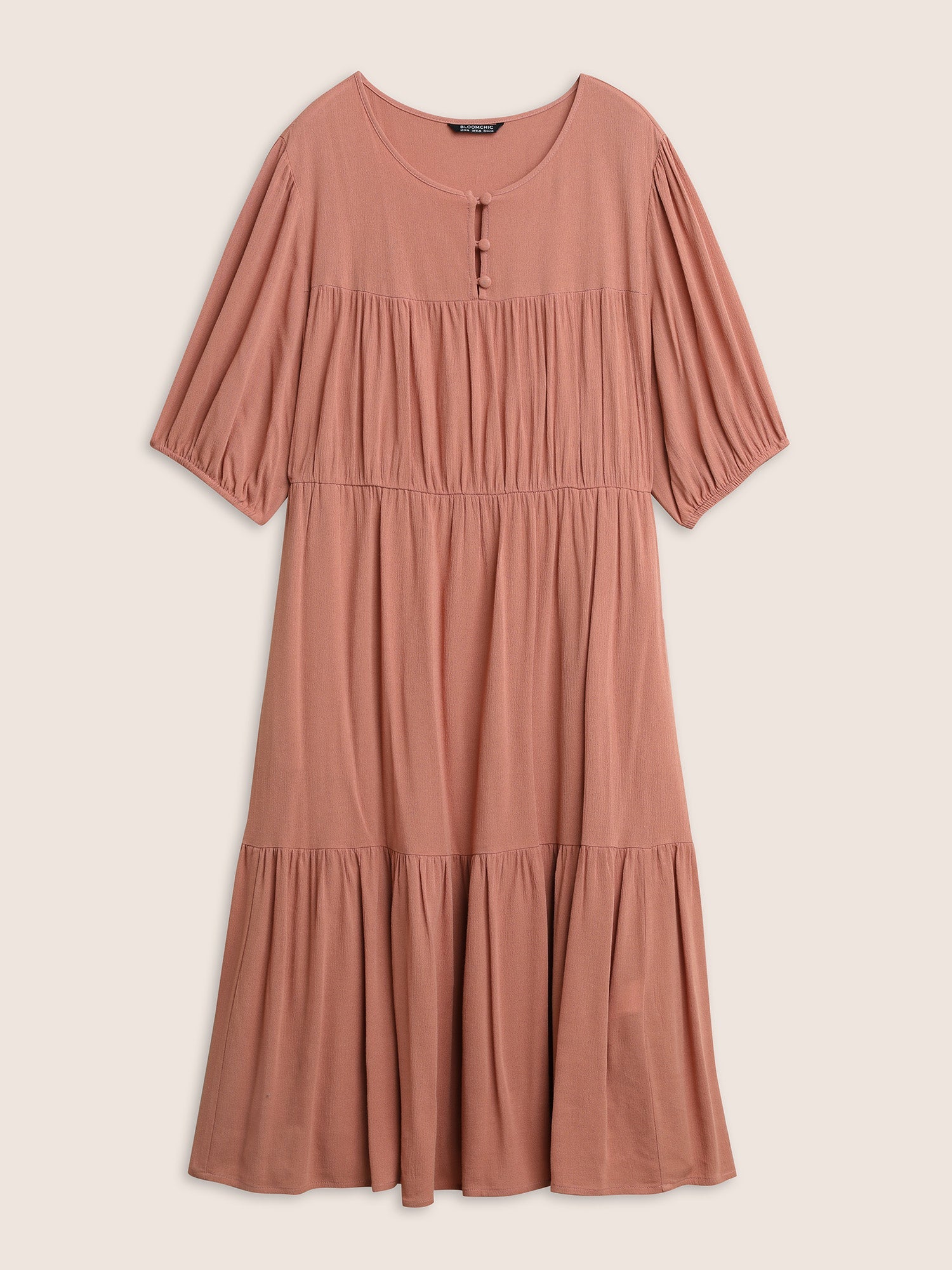 Elastic Waist Patchwork Gathered Rayon Dress