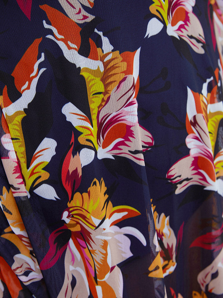 Floral Mesh Surplice Neck Ruffles Swim Dress