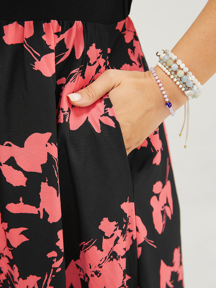 Floral Patchwork Drawstring Pocket Ruched Ruffles Cami Dress
