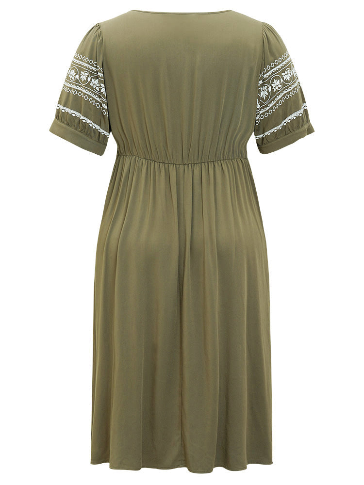 Floral V Neck Puff Sleeve Pocket Flutter Dress