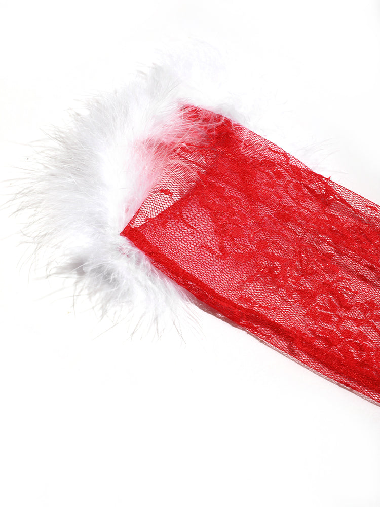 Fuzzy Trim Lace Sheer Ties Night Dress