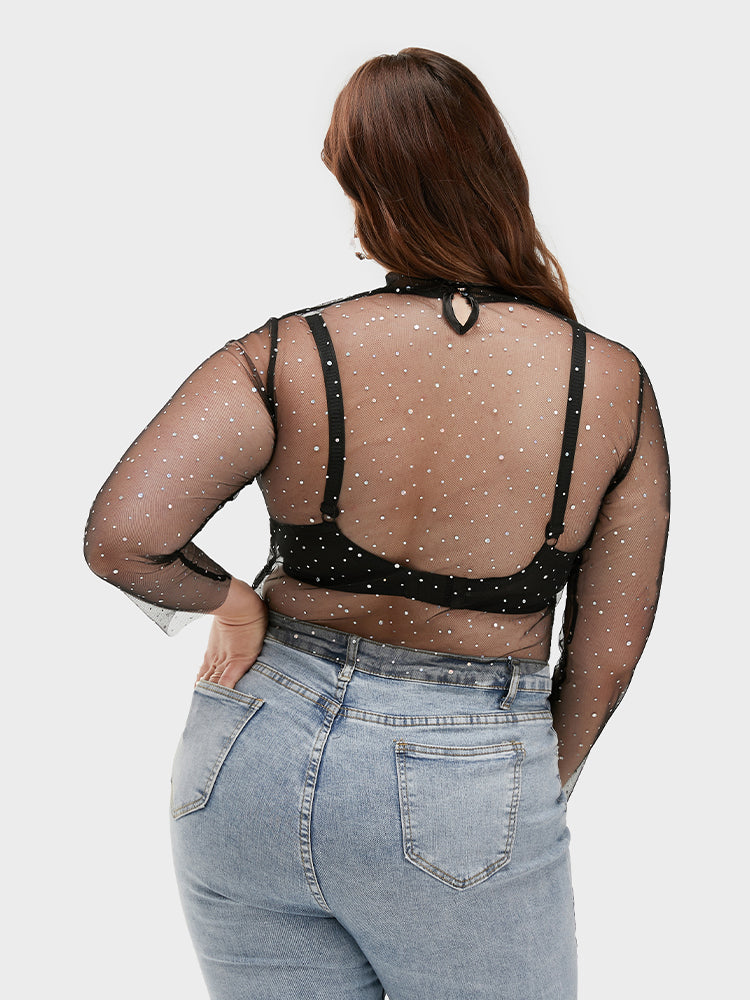 Galaxy Print Mesh Mock Neck Bodycon T-shirt