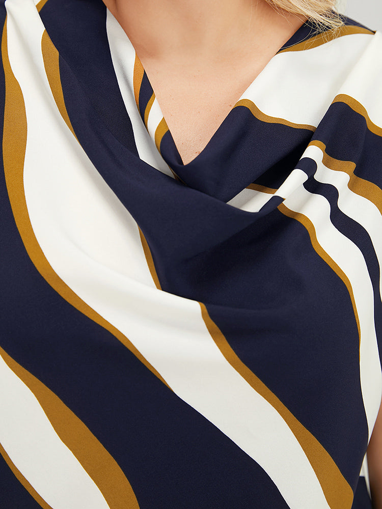 Geometric Contrast Cowl Neck Ruffle Sleeve Blouse