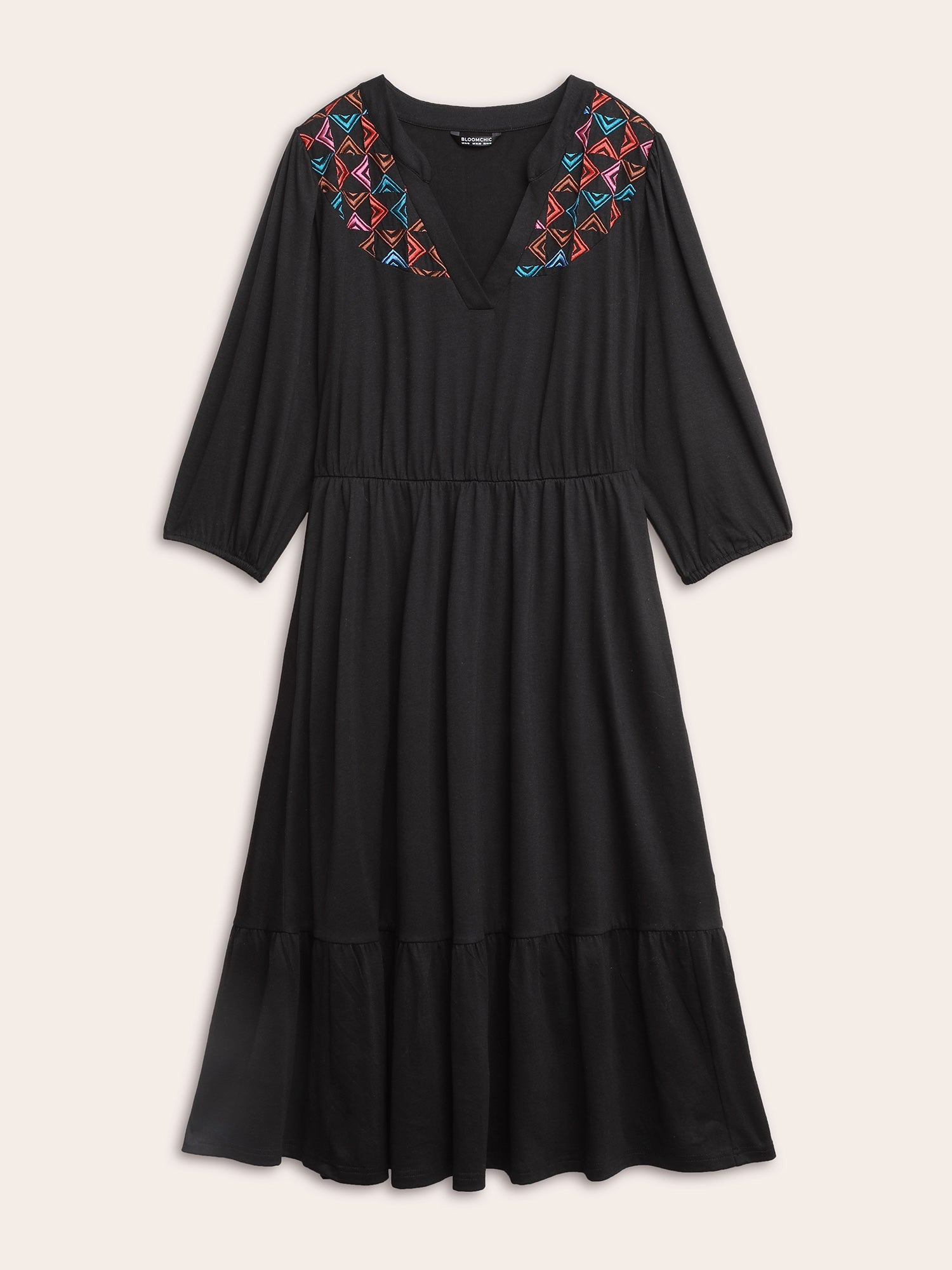 Geometric Contrast Embroidered Elastic Waist Dress