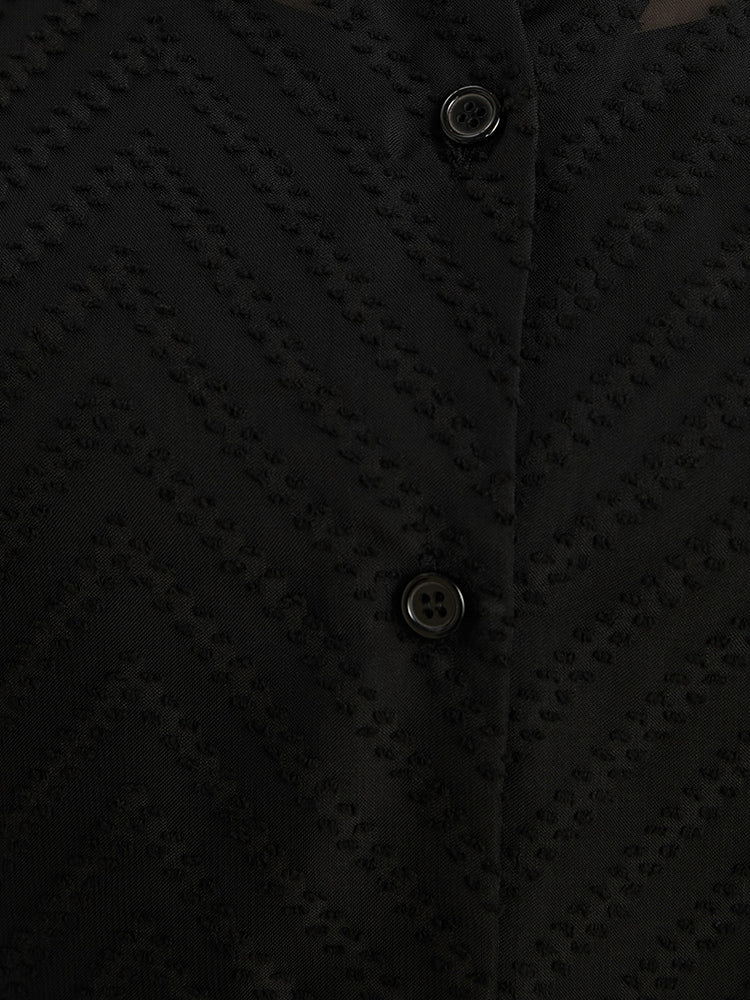 Geometric Mesh Button Up Textured Blouse With Cami Top